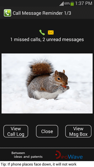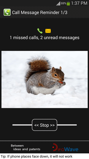 حال شاید فکر کنید چگونه برنامه یادآوری خواهد کرد؟!!در جواب باید گفت پس از تماس های میس کال و جواب داده نشده یا پیام های دریافتی خوانده نشده زمانی که صفجه گوشی خاموش است تایمر برنامه به کار خواهد افتاد و پس از زمانی که در تنظیمات وارد کرده اید هشدار خود را آغاز میکند و بدین ترتیب سعی میکند شما را یاداوری کند که شما تماس های از دست رفته و پیام های دریافتی خوانده نشده دارید.