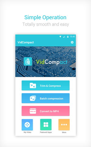 VidCompact اپلیکیشن قدرتمند جهت تبدیل فرمت ویدئویی و همچنین فشرده سازی فایل های ویدئویی در سیتم عامل اندروید می باشد.این برنامه توسط تیم قدرتمند و محبوب VideoShow که با بیش از 200 میلیون کاربر ایجاد شده است.VidCompact یک مبدل ویدئویی قدرتمند اما کاملا رایگان است که فایل ها را به راحتی میتواند تغییر فرمت و همچنین فشرده سازی را اعمال کند. این برنامه جدید است، اما به سرعت در حال رشد است و عملکرد بیشتری در آینده خواهد داشت.از دیگر ویژگی های برنامه میتوان به :برش فیلم ها – تغییر نام – فشرده سازی -اشتراک گذاری و…. اشاره کرد.این برنامه تا به الان توانسته است امتیاز 4.4 را به خود اختصاص دهد.پیشنهاد میکنیم این اپلیکیشن فوق العاده را از سرورهای پرسرعت و قدرتمند ویترین اپلیکشین دانلود نمایید.