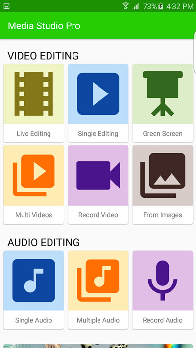 Media Studio Pro یک برنامه حرفه ای و بسیار عالی برای ویرایش صدا و تصویر در موبایل است. این برنامه دارای گزینه های خروجی می باشد که ظاهر و صدای مورد نظر را برای شما آماده می کند. میزان ارسال بیت کدگذاری تا 30،000 کیلوبیت بر ثانیه برای حفظ کیفیت HD، رندر بومی، جدا کردن، پیراستن، چرخش و فلیپ، استخراج ویدئو، استخراج صدا، اضافه کردن متن، منطقه تار و … از دیگر امکانات این برنامه است. تنظیمات پیشرفته و تبدیل به فرمت های مختلف برای واردات و صادرات ساده نیز در این نرم افزار موجود است. با این اپلیکیشن یک مجموعه کامل ویرایش را برای کار بر روی فیلم و موسیقی در هر مکان و زمان همراه خود خواهید داشت. این نرم افزار شامل گزینه هایی مانند ویرایش صفحه سبز، معکوس کردن ویدئو، ایجاد ویدئو از تصاویر، اضافه کردن متن در ویدیو، تعادل رنگ و بسیاری دیگر می باشد. این یک ابزار همه کاره، با استفاده آسان برای فیلمسازان و یا نوازندگان است.