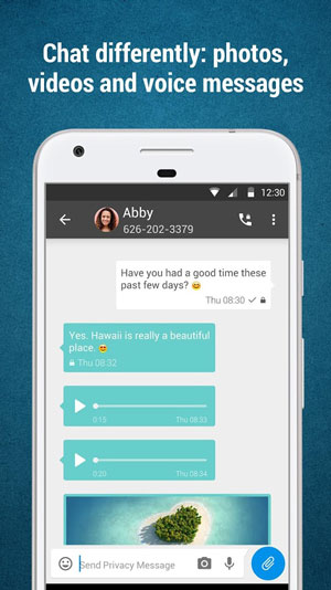بررسی نرم افزار Privacy Messenger Pro: پیام رسان امن یا پیام رسان حریم شخصی، یک نرم افزار رایگان، بدون تبلیغات و امن برای فرستادن پیام می باشد که قابلیت پشتیبانی از اس ام اس و ام ام اس را نیز در تمامی گوشی های اندروید دارا می باشد.این نرم افزار از اینترنت برای رساندن پیام های شما استفاده میکند که همچنین علاوه بر پیام میتوانید عکس و ویس نیز بفرستید و یا تماس صوتی برقرار کنید